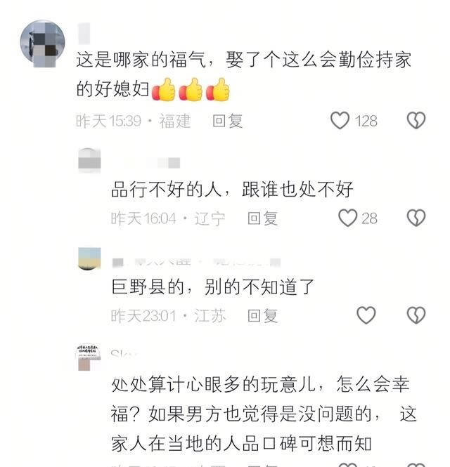 也有人夸赞男方有福气,娶了个这么会勤俭持家的好媳妇